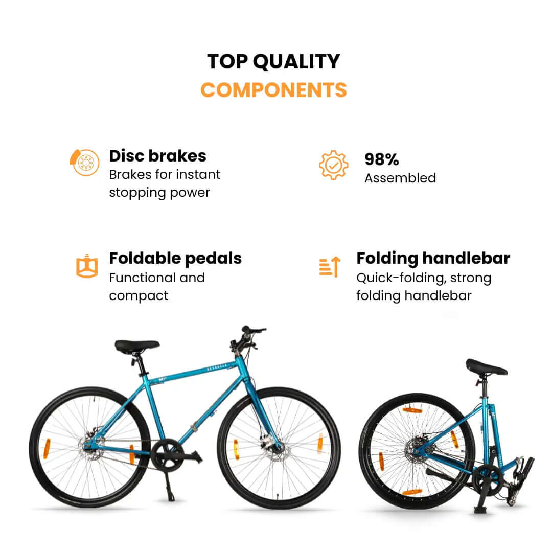 Priced at ₹12,999, the M1s is one of the most affordable hybrid bicycles featuring Hornback’s patented SMAC (full-sized folding) frame — making it compact, practical, and stylish for everyday riders.