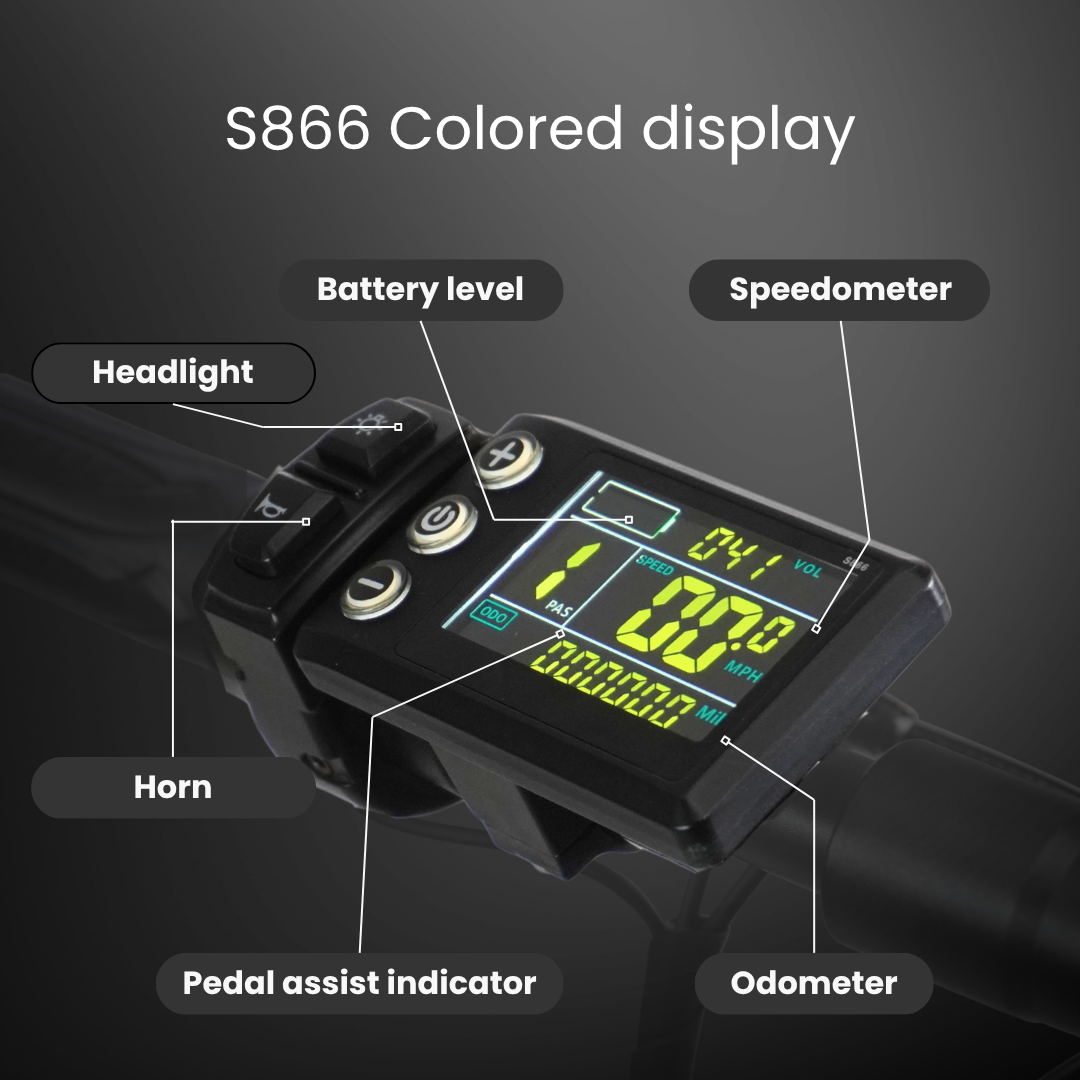 The Colour Display shows all your ride info in one clear view —speed, battery, assist level, distance and ride modes. Bright, sharp and easy to read anytime — morning, evening or cloudy weather. Because when you can see everything clearly, you ride with confidence. One glance. Full control.